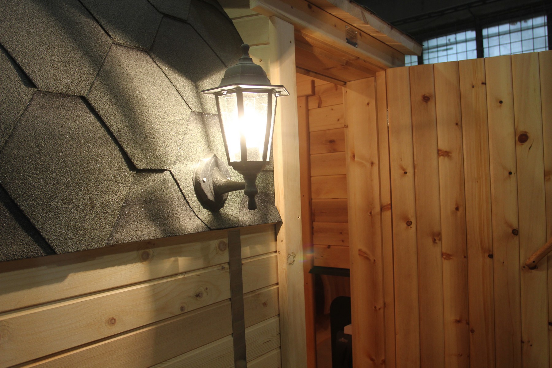Стандартный светильник будет служить вам верой и правдой, освещая вход в баню.